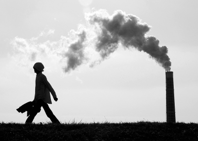 20091228日,在日本東京的一個(gè)工業(yè)區(qū),一名當(dāng)?shù)鼐用駨囊患夜S的煙囪旁走過。