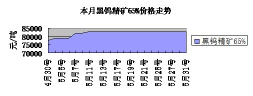 延續(xù)四月份漲勢,本月初期鎢精礦、APT、碳化鎢等鎢系產(chǎn)品持續(xù)上行,鎢鐵雖然沒有跟隨上調(diào)走勢,但價格基本走穩(wěn),后期后所上調(diào)。而到中旬的時候,隨著市場拋售傾向明顯,APT價格步入下調(diào)走勢,但之后價格企穩(wěn),市場普遍看漲APT后市。 在國家出臺一系列控制稀有金屬開采量以保護戰(zhàn)略優(yōu)勢資源后,鎢系產(chǎn)品價格一直處于強勢上漲狀態(tài)。自本月初一陣飆漲后,65%規(guī)格黑鎢價格一直穩(wěn)定在漲后的82,000-84,000元/噸價位,而 65%白鎢精礦價也持續(xù)報在80,000-82,000元/噸。 本月中旬受之前炒作因素影響,APT市場出現(xiàn)短暫的拋售現(xiàn)象,但目前庫存已得到釋放,價格企穩(wěn),市場均看漲6月后市。 受國內(nèi)外鋼鐵需求疲軟影響,國內(nèi)鎢鐵價格漲勢較滯后,中下旬鎢鐵有所上漲,之后保持穩(wěn)定,交易仍然不多。國內(nèi)75%規(guī)格鎢鐵價格月末報在125,000-130,000元/噸。