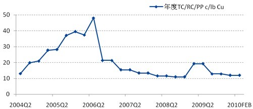 近年來銅冶煉產(chǎn)能,特別是在中國的冶煉產(chǎn)能迅速增加是導(dǎo)致現(xiàn)貨銅精礦出現(xiàn)缺口,今年銅精礦供應(yīng)缺口約50萬至100萬噸,市場至少在未來三年內(nèi)將進(jìn)入供不應(yīng)求局面。這主要因?yàn)檩^低價位導(dǎo)致礦商拖延項(xiàng)目。在過去的數(shù)月中,中國和全球市場銅精礦TC/RC一直呈下滑趨勢。這將令銅精礦的TC/RC承壓。現(xiàn)階段,銅精礦現(xiàn)貨TC/RC僅為5美元/噸0.5美分/磅-10美元/噸1.0美分/磅,廢銅價格也相比電解銅更為堅挺,原料貨源供應(yīng)緊張。但目前原料方面,企業(yè)均表現(xiàn)目前庫存充足,能夠維持正常生產(chǎn)。 進(jìn)入2010年以來,中國外氧化鋁一度大量減產(chǎn),造成小范圍內(nèi)的氧化鋁供應(yīng)緊張,現(xiàn)貨價格受到炒家和海運(yùn)費(fèi)上漲的影響開始扶搖直上,澳大利亞FOB的價格普遍達(dá)到350美元/噸,國外氧化鋁價格遠(yuǎn)高于國內(nèi)。使得大量國內(nèi)企業(yè)的長單在境外轉(zhuǎn)手,轉(zhuǎn)向國內(nèi)采購,導(dǎo)致國內(nèi)價格的上升。下半年隨著氧化鋁產(chǎn)能的釋放,價格繼續(xù)上行的空間將很有限。 2010年鋅精礦受西方精鋅冶煉廠開工率逐步提高的推動,全球精礦供應(yīng)趨緊,近期中國進(jìn)口鋅精礦的加工費(fèi)已經(jīng)下滑10%以上。未來極有可能再度出現(xiàn)鋅精礦短缺的局面。 礦原料的緊張,加工費(fèi)的下降將會加大國內(nèi)有色企業(yè)經(jīng)營的難度。