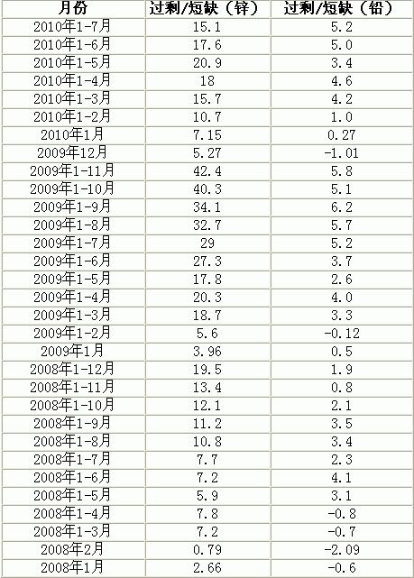 以下為2008年以來國際鉛鋅小組(ILZSG)公布的錢鋅月度供需數(shù)據(jù):(單位:萬噸)