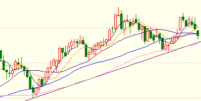 受 中國等新興市場需求強(qiáng)勁預(yù)期影響,商品繼續(xù)沖高,周四倫銅創(chuàng)下歷史高點。由于資金關(guān)注度不夠,倫鎳表現(xiàn)疲軟,10月6日的階段高點25200美元始終難以 突破。周五,中國暴跌拖累全球商品市場走低,金屬深幅回調(diào),截至下午歐洲開盤,倫鎳最低跌至400多美元/噸。后市倫銅等金屬若展開中等級別的回調(diào),因前 期漲幅不大,料倫鎳下跌幅度有限。  圖4 美元指數(shù) 圖5 道瓊斯指數(shù)