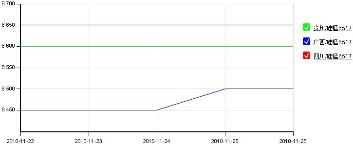 圖2:全國主要地區(qū)硅錳合金走勢圖(2010.11.22-2010.11.26)