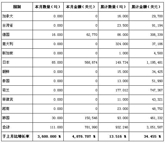2010年11月份各國海關(guān)出口鈦鐵及硅鈦鐵分國統(tǒng)計