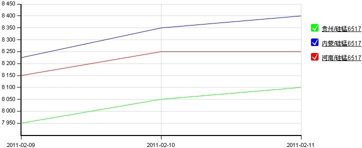 圖2:全國主要地區(qū)錳合金走勢圖(2011.2.7-2011.2.11)