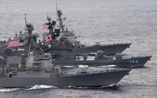 資料圖:1月10日,日美三艘參演戰(zhàn)艦組成海上編隊