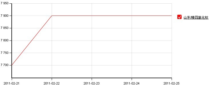 本周精四氯化鈦市場供應(yīng)緊張持續(xù),價格也繼續(xù)上漲。以下是本周國內(nèi)山東地區(qū)四氯化鈦的行情走勢圖: