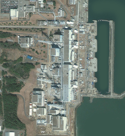 3月18日(當(dāng)?shù)貢r(shí)間上午10時(shí)03分)拍攝的衛(wèi)星照片顯示的是日本福島第一核電站。