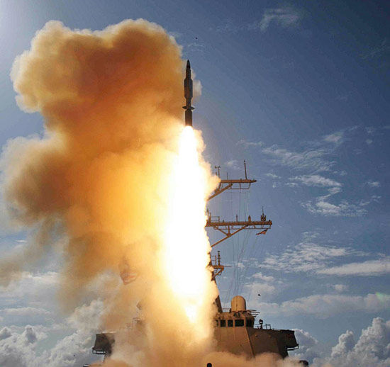 資料圖:SM-3導(dǎo)彈開加力升空。
