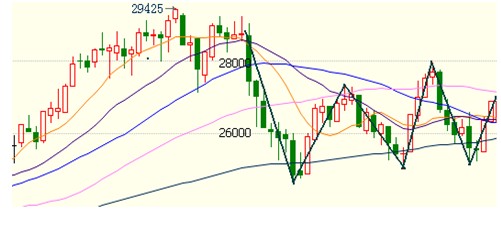 圖4:倫銅走勢(shì)圖 圖5:道瓊斯指數(shù)