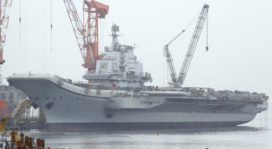 資料圖:在中國大連進(jìn)行改裝的瓦良格號(hào)航母