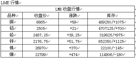 期貨市場:美元指數(shù)走低及經(jīng)濟數(shù)據(jù)利好 下,昨基本金屬震蕩走高,受智利銅礦減產(chǎn)消息影響倫銅昨夜震蕩走高,但上方9000美元附近壓力明顯,今料滬銅小幅高開,前期多單可少量持有。滬鋅有繼續(xù) 反彈的可能,料今高開百元左右,多單繼續(xù)持有。滬鋁上行仍顯乏力,觀望。受環(huán)保壓力明顯,鉛下游蓄電池面臨整合壓力,滬鉛空單持有。