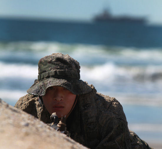 在美國演練兩棲戰(zhàn)法的日本陸上自衛(wèi)隊士兵