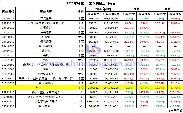 2022年8月份中國鎢制品出口數(shù)據(jù) 作者: zhenghua 發(fā)布日期: 2022年9月20日 266 2022年8月份中國鎢制品出口數(shù)據(jù) 如您對相關(guān)產(chǎn)品感興趣或想銷售您的產(chǎn)品,請聯(lián)系我們: Please leave this field empty.
