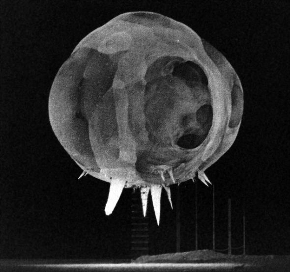 核爆后第1毫秒的影像,此時(shí)的沖擊波只有20米寬,是在上世紀(jì)50年代一次核試驗(yàn)期間拍攝的