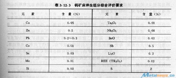 表3.12.3鎢礦床伴生組分綜合評價要求