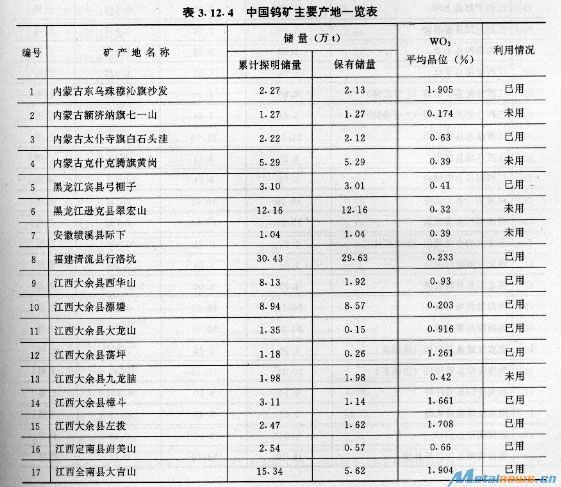 表3.12.4中國鎢礦主要產(chǎn)地一覽表