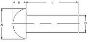 (A typical technical drawing of a oval head semi-tubular rivet)