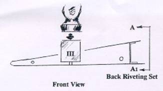 Note: It pays to periodically recheck calibration using the wood block and straight rivet set. The straight set is only used during calibration. The back riveting set is reinstalled for actual riveting.