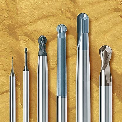 Solid carbide ball nose end mill in different types.