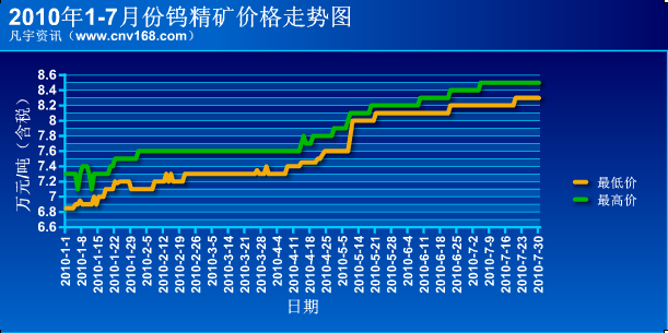 2010年1-7月份鎢精礦價格走勢圖