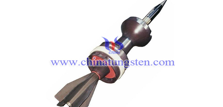 鎢心脫殼穿甲彈由彈心、前托、底托及閉氣環(huán)組成。在膛內,底托包覆著彈心在火藥燃氣作用下沿槍管運動,使品質較輕的彈頭獲得高初速和轉速。出槍口後,底托脫落,彈心飛向目標。彈心是穿甲元件,由鎢合金材料製成。因為鎢合金的比重為18g/cm3,是鋼比重(7.8g/cm3)的2.3倍。