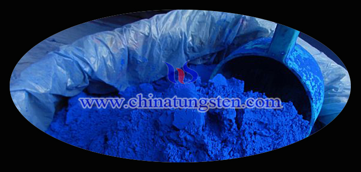 藍(lán)色氧化鎢的組成受製備方法、條件的制約,其範(fàn)圍變化用通用的氧指數(shù)表徵,在WO2.72、WO2.99較寬的範(fàn)圍變化,物料顔色在鐵灰—黑藍(lán)—普魯士藍(lán)—寶石藍(lán)色間變化。