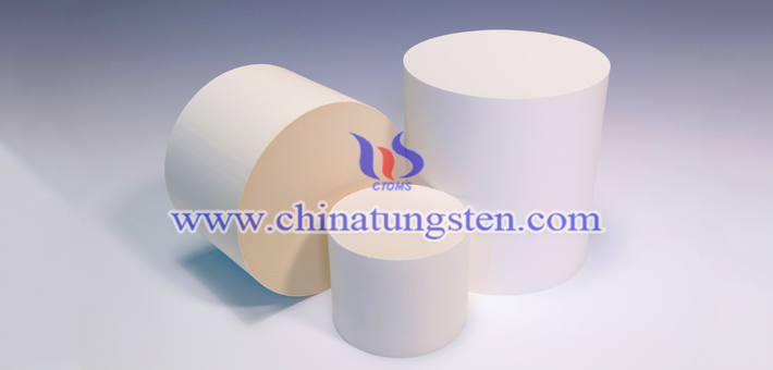 偏鎢酸銨,和偏釩酸銨、硝酸鈰和乙酸鈀一起,作為活性組分,可以用於製備高比表面積多孔蜂窩陶瓷催化劑。研究人員提出一種高比表面積多孔蜂窩陶瓷催化劑的製備方法,需要經(jīng)過混煉、陳腐、捏合、成型、乾燥和焙燒等步驟。其中,二氧化鈦、蒙脫石和α氧化鋁為載體,輔料為一乙醇胺、氨水、乳酸、硬脂酸、玻璃纖維、高分子聚合纖維、羥丙基甲基纖維素、聚氧化乙烯、檸檬酸和水。