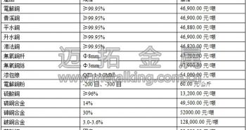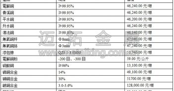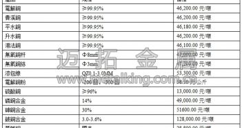 期貨市場(chǎng)方面,受美國(guó)總統(tǒng)特朗普稅改計(jì)畫的影響,金融市場(chǎng)整體情緒偏樂(lè)觀,基本金屬受振明顯,滬期銅走勢(shì)偏穩(wěn),收於46230元/噸,漲350元/噸,日內(nèi)最大波幅300…
