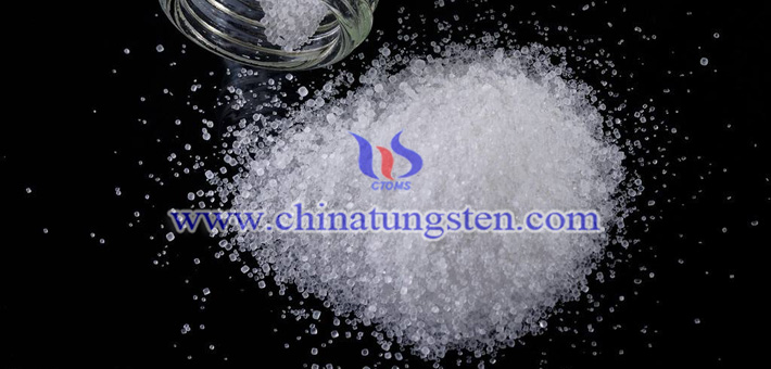 鎢酸銨是一種溶于水、不溶於乙醇、片狀或針狀的白色斜方晶體,其英文名稱(chēng)為ammonium tungstate,分子式為(NH4)10W12O41~xH2O。在20℃時(shí),于水中的溶解度小於2%。在100℃時(shí),它會(huì)失去四分子結(jié)晶水。它可以由鎢酸與氨水作用而得。