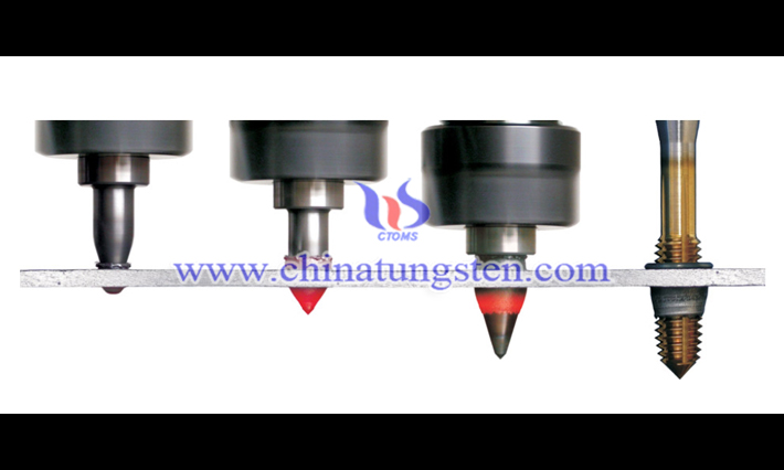 硬質(zhì)合金熱熔鑽頭利用高速旋轉(zhuǎn)和高軸向壓力在薄管或薄板上產(chǎn)生大量摩擦熱,鑽頭的溫度可達(dá)900度,加工點(diǎn)位元的溫度也達(dá)到650-750度。加工點(diǎn)位元的材料處於“超級(jí)可塑性”狀態(tài),鑽頭將這部分材料移位元並塑型形成襯套。襯套的高度可為原工件厚度的3-4倍。