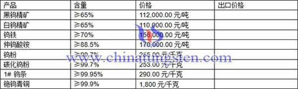 Quotation of Tungsten Concentrate, Tungsten Oxide, Ferro-Tungsten, Tungsten Powder, Tungsten Carbide Powder and Others Tungsten Products of China Tungsten Online on August 30, 2017