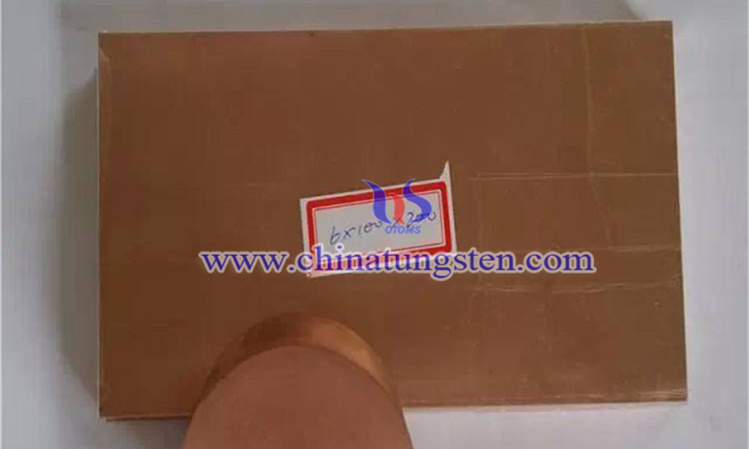 5×100×200mm tungsten copper plate with 5mm thickness, width is 100mm, and length is 200mm, general tolerance of thickness is ±0.2mm, length and width tolerance is 0 to +2mm. With excellent electrical and thermal conductivity, uniform microstructure, high temperature resistance, high strength, arc erosion resistance and high density.