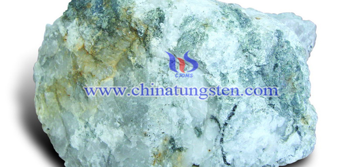 白鎢礦是一種礦石,外形為粒狀石塊,白色帶黃,有脂肪光澤,橙色,雙錐狀晶體,晶體碩大,且尖端呈透明深橙色,與方解石白云母和黑色錫石共生,其中白鎢礦和方解石具有熒光性,加熱或經(jīng)紫外線照射,略呈紫色,是煉鎢的主要原料?;瘜W(xué)組成為Ca(WO4)、晶體屬四方晶系的鎢酸鹽礦物,WO3含量為 80.6%。它與黑鎢礦同為鎢的最主要礦石礦物,成分中鎢可部分被鉬成類質(zhì)同象替代。晶體為近于八面體的四方雙錐狀,通常呈不規(guī)則粒狀或致密塊狀集合體,無色或白色,一般多呈灰色、淺黃、淺紫或淺褐色。玻璃光澤到金剛光澤,斷口呈油脂光澤,解理中等,斷口參差狀。