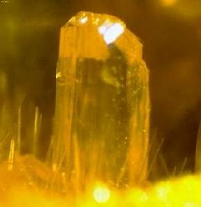 物理性質(zhì):黃色、紅褐色、淺綠或褐色。玻璃光澤、油脂光澤,條痕呈白色、黃色,透明至半透明。硬度4~4.5,性脆,比重4.72~5.12,有時具放射性、具弱磁性。在薄片中透明,在透射光下無色或淡黃色,在陰極射線下不發(fā)光。