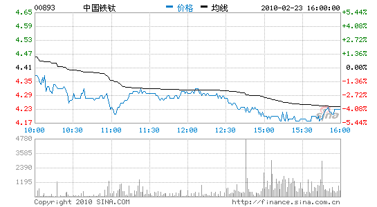 受業(yè)績遜于預(yù)期影響,中國鐵鈦昨日股價下滑4.08%至4.23港元。