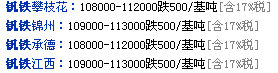今日國內(nèi)釩鐵小幅下滑,上周鋼材采購乏力,價(jià)格偏低,對于一直疲軟的國內(nèi)市場而言幾乎可以說是雪上加霜,貿(mào)易商們見釩鐵一直弱勢盤整,部分貿(mào)易商已經(jīng)心態(tài)不穩(wěn),河北地區(qū)不帶票價(jià)格已經(jīng)低至 9.55 萬 -9.6 萬, 9.55 萬為自提價(jià), 9.6 萬為送到價(jià)。