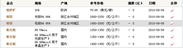 9月9日 國內(nèi)外鉭市場最新行情價格匯總