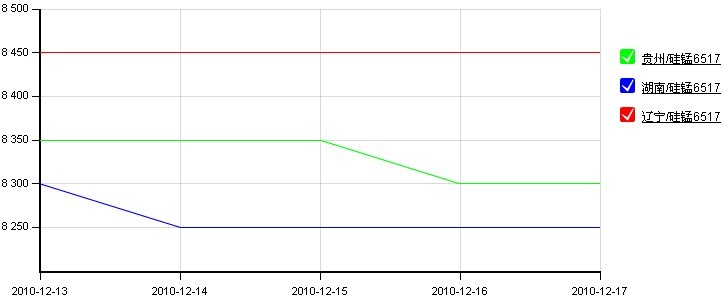 圖2:全國主要地區(qū)錳合金走勢圖(2010.12.13-2010.12.17)