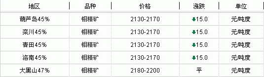 3月2日 國內(nèi)主要地區(qū)鉬精礦市場最新價(jià)格參考