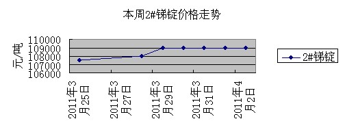 行情回顧及預(yù)測:本周銻價在基本面推動下繼續(xù)上行,2#銻錠價格基本已經(jīng)突破11萬元/噸大關(guān),甚至有廠家透露報在11.5萬 元/噸,1#及0#銻錠稍高價則分別為11.3萬元/噸及11.5萬元/噸,成交價也在不斷跟漲,但消費商高價采購謹慎,大都按需進行小批量采購。銻錠成 本增加帶動三氧化二銻價格也持續(xù)報漲,當前最高價格已經(jīng)到達10萬元/噸,但在此價位成交尚少,廠家表示他們大都是按照銻錠成本提價,雖買家當前高價接受 程度較低,但他們對后市仍不失信心。