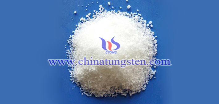 仲鎢酸鈉是一種無色三斜晶體,與仲鎢酸銨在組成和結構上相似,其英文名稱為sodiumparatungstate,化學式為Na10(H2W12O42)?27H2O,分子量為3596.50,比重為3.987(14℃)。它溶于冷水,在熱水中分解,加熱至100℃,開始失去水。它在溶液中大致相當于12聚集態(tài),繼續(xù)加酸聚合可得異偏鎢酸離子及偏鎢酸鹽。仲鎢酸鈉圖片